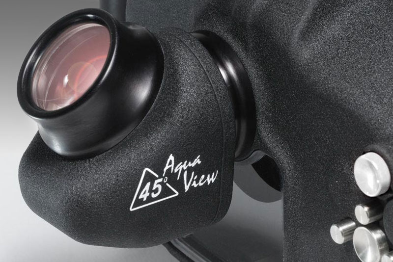 The Aqua View 45 optical tract is built of high quality BK-7 coated glass elements, delivering a 100% enhanced viewing area, allowing the photographer to see a crisp, bright and sharp image from corner to corner from a convenient and comfortable angle of view.