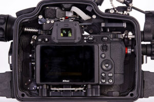 Housing for Nikon Z6II & Z7II with dual optical fiber ports (LED flash trigger included) and complete Vacuum circuitry kit