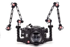 The Nikon Z6/7 Mirrorless cameras are one of Nikon’s entries into the ever growing mirrorless camera market. Essentially mirrorless versions of the Nikon D850 and D750, these cameras follow the trend of most major manufacturers going mirrorless for their main pro/consumer offerings. Both camera bodies have an identical control layout, leading to Aquatica being able to use one housing for the 2 cameras. The main difference between the 2 cameras would be the Z6 uses a 24MP full frame sensor and the Z7 has a 45.7MP sensor. The Z6 also has a 25% faster maximum frame rate than the Z7 since it has to move smaller files. Both cameras capture 4K video though the Z6 creates down sampled 24MP images whereas the Z7 uses a DX-cropped Super35 mode. The cameras have a new Z mount system to support the new line of Z mount lenses; however, Nikon has created the FTZ mount adapter to allow owners of traditional Nikkor F-Mount lenses with these new cameras.